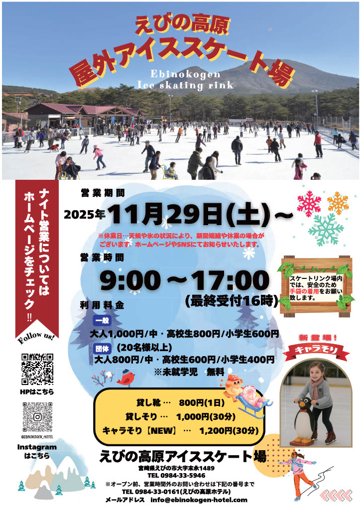 日本最南端の屋外アイススケート場として毎年大人気の「えびの高原アイススケート場」が今シーズンもオープン!