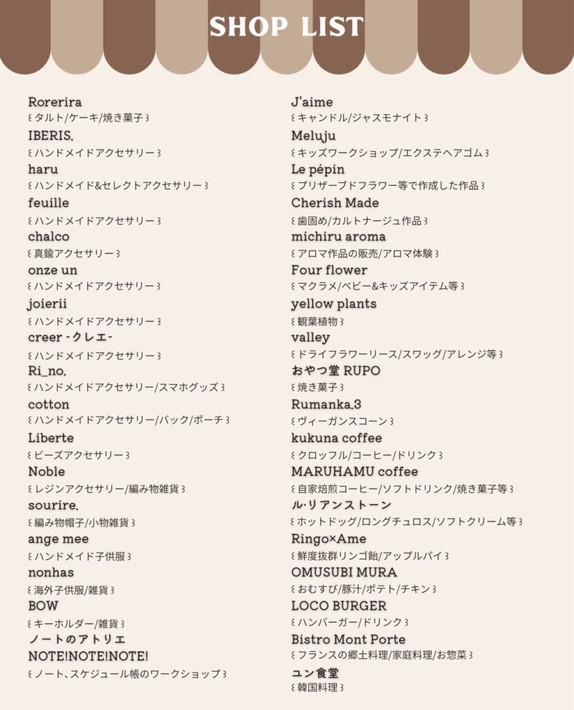 特別企画のスタンプラリー抽選会も開催!なんと150個の景品が用意されているそうですよ。今週末は「RORERIRA MARCHE」で可愛いアクセサリーやお気に入りのアイテムを見つけてみてはいかがでしょうか。ぜひ足をお運びください♩