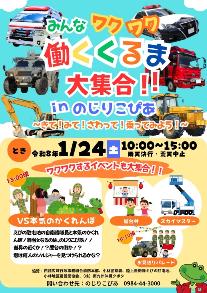 1月24日(土)のじりこぴあにて「みんなワクワク働くくるま大集合!!inのじりこぴあ」開催!