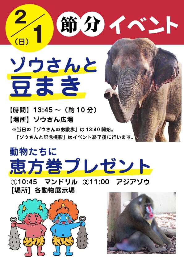 2月1日(日)に宮崎市フェニックス自然動物園で節分イベント「ゾウさんと豆まき」が開催されます。