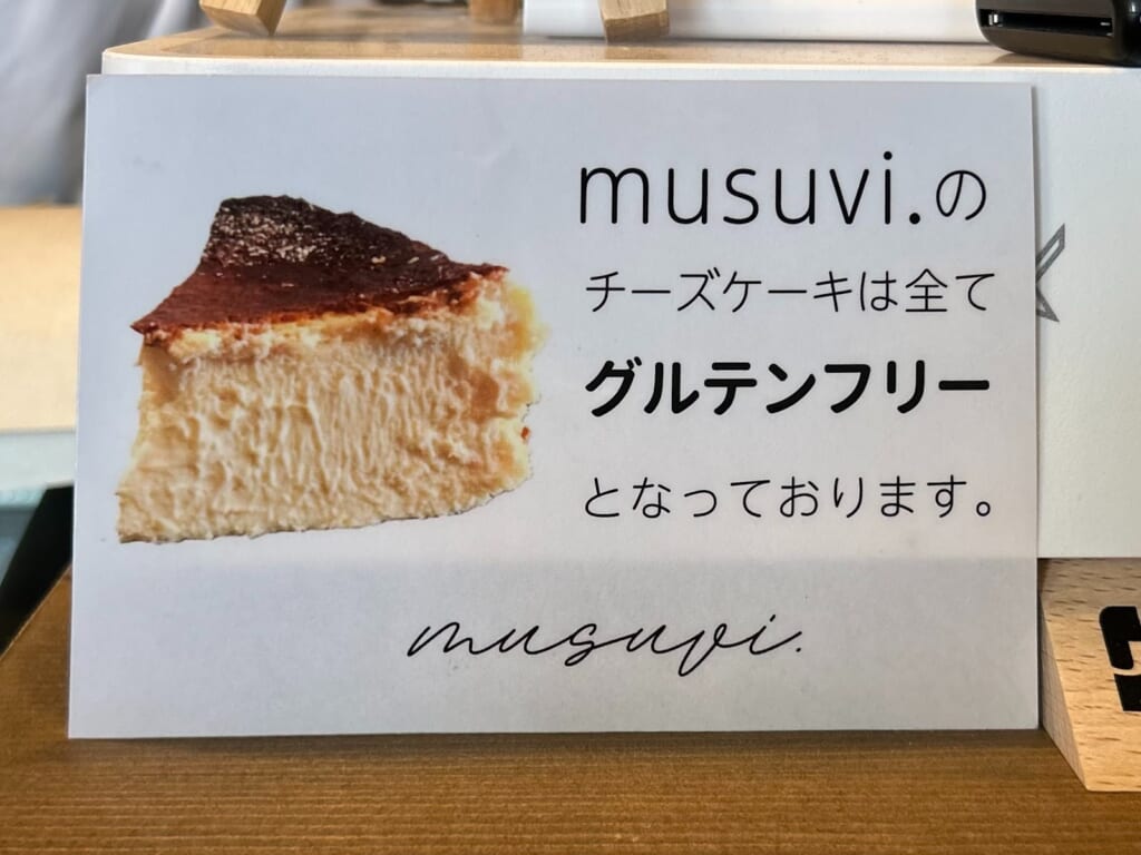 今回ご紹介するのは、スイーツ好きな方必見!人気のグルテンフリーのチーズケーキ専門店 ” musuvi .”