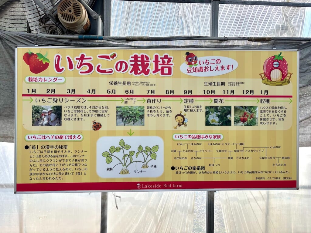 また、休憩スペースでは、いちごの栽培や仕組みについて紹介された看板を見ることができますよ!豆知識を得ることができ、きっとさらにいちご狩りを楽しむことができるはずです!
