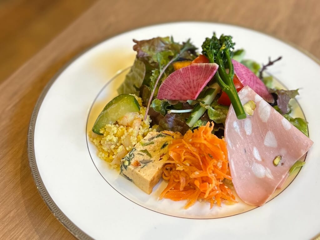 彩り豊かな前菜盛り合わせからスタート。新鮮な季節野菜に、少しずついろんな味が楽しめるプレートは、思わず写真を撮りたくなる綺麗さでした。