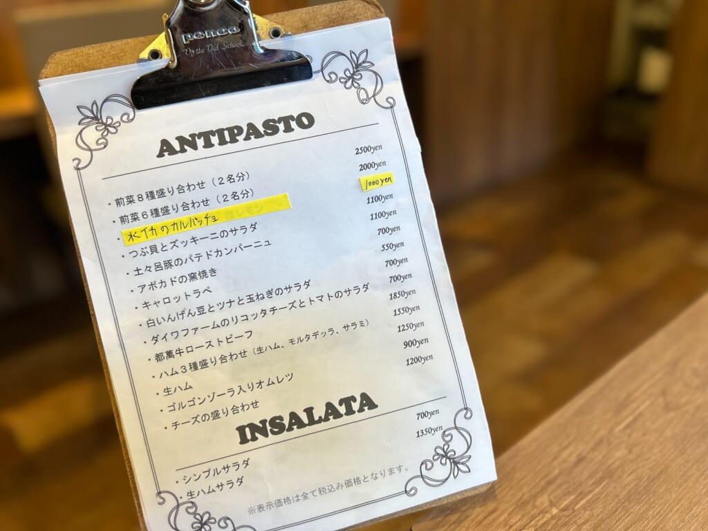 ランチコースは〈Pranzo A 〉と〈PranzoB〉の2種類が用意されていて、違いは最初の一皿の “サラダ” か “前菜盛り合わせ” にあります。