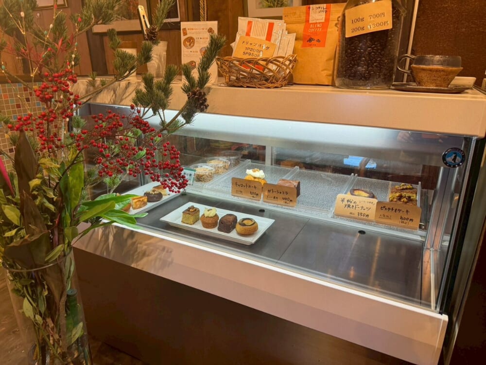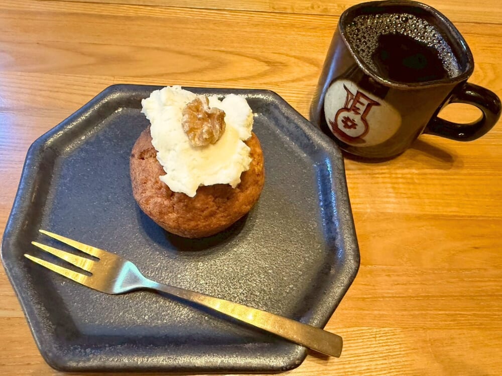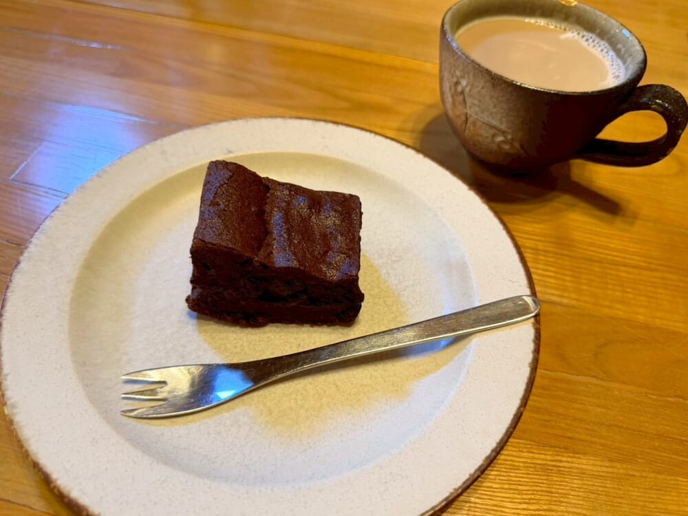 この日はピスタチオケーキ、キャロットケーキ、ガトーショコラ、米粉のあんこときなこのドーナツの4種類が準備されていました。全部美味しそうで迷いましたが、キャロットケーキとガトーショコラをオーダー。