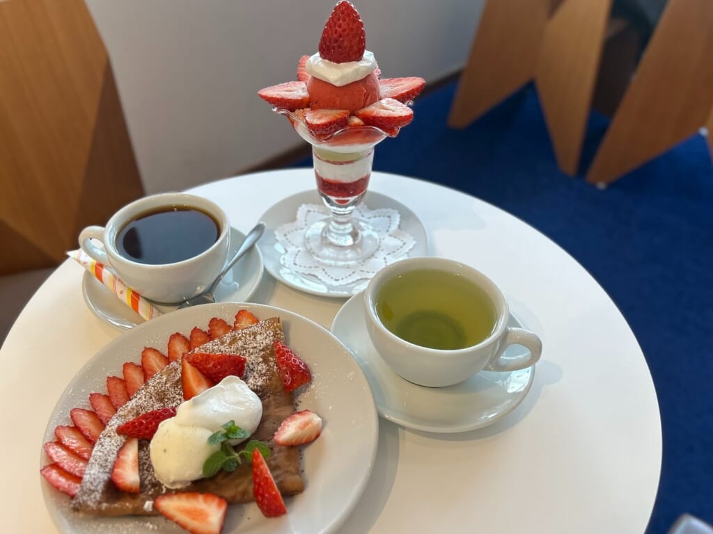 今回私がいただいたのは、「ストロベリークレープ」。クレープ生地はほんのりバターの香りで、もちもち食べ応えがありました。パフェとはまた違う“ お皿で楽しむイチゴの贅沢 “。この時期だけの特別感もあって、季節を味わう1皿という言葉がぴったりでした♩
