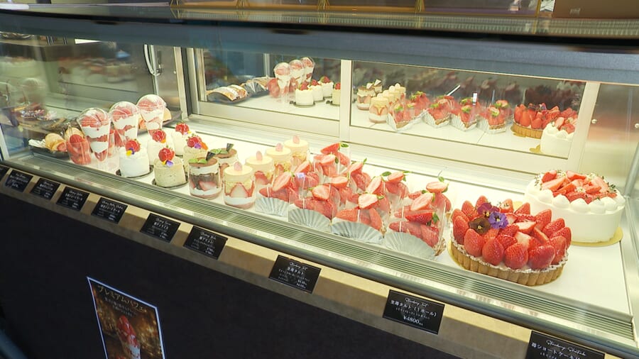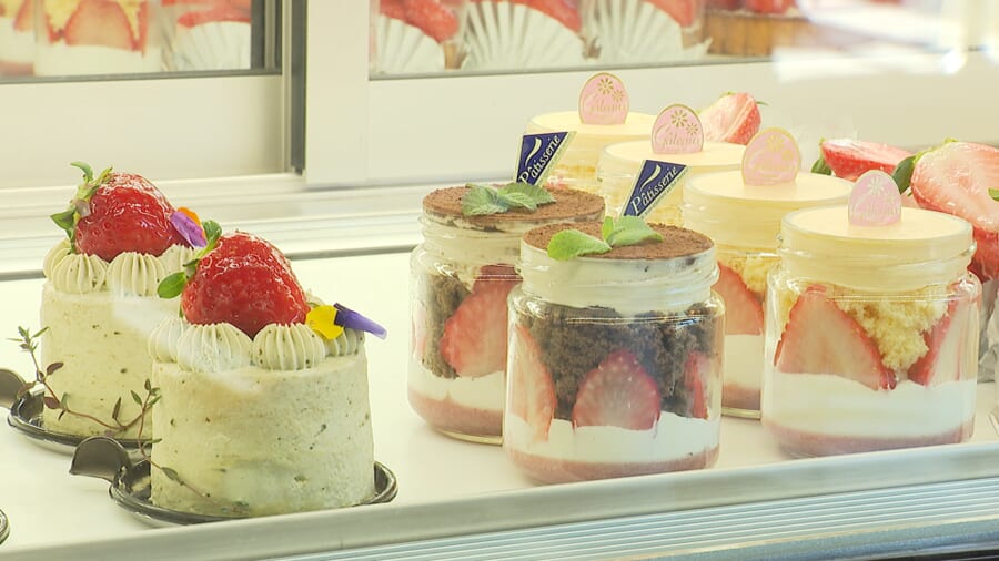 またショーケースには、タルトや米粉を使ったクレープなど、採れたてイチゴのおいしさを存分に味わえるスイーツが並びます。