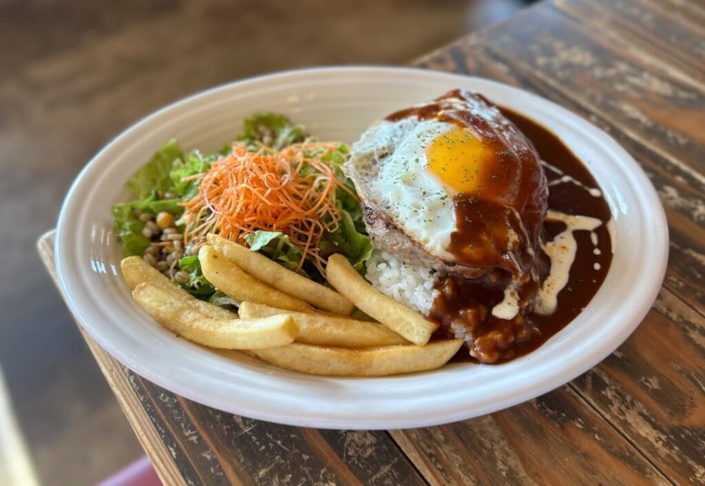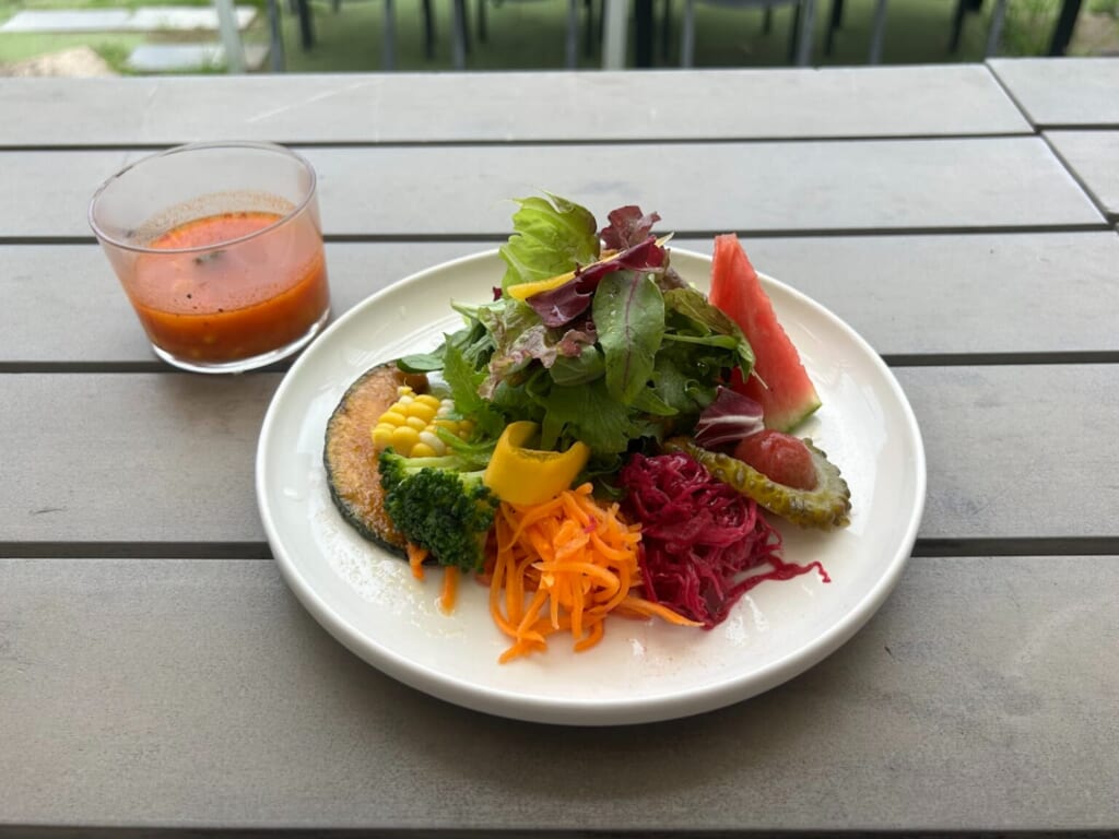 JR子供の国駅から徒歩約1分という好立地にあり、Instagramのフォロワー数・1万人を超える大人気の自然派カフェです。野菜をふんだんに使ったヘルシーランチとパフェ、ドリンク等が楽しめ、観光客にも地元の人にも愛されているお店です🥬