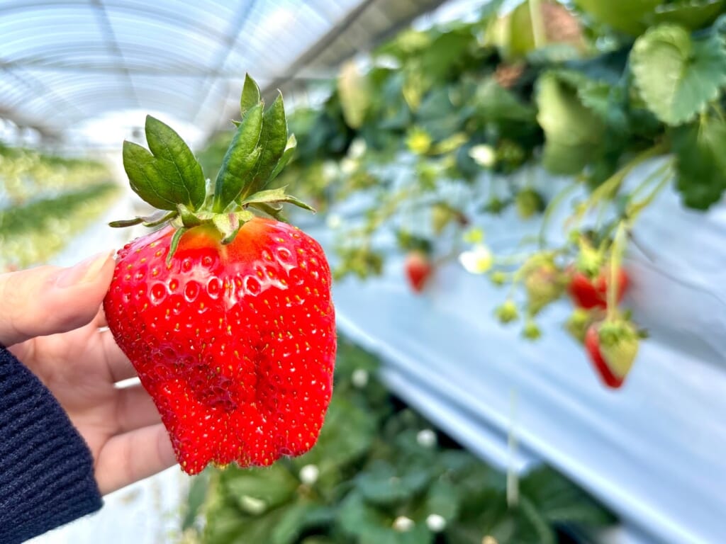 ほどよい酸味で後味がスッキリしていることが特徴の品種です!写真からも甘さが伝わるくらい、上部までとても真っ赤ないちごを見つけました!