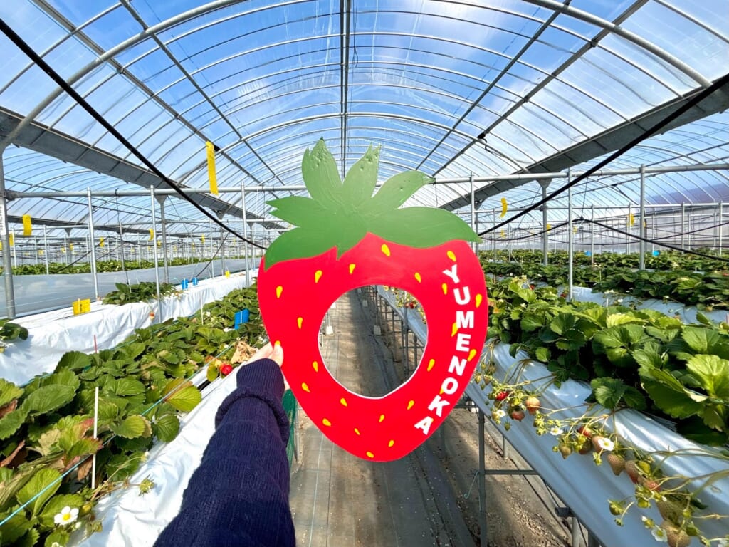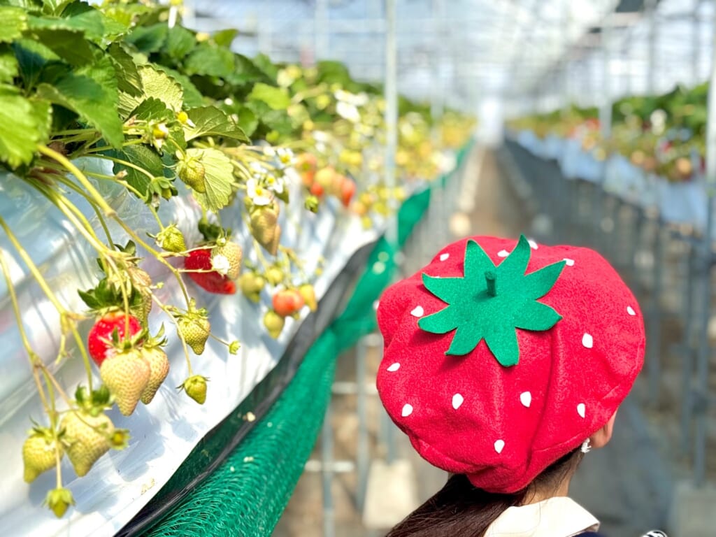 ハウスの中に入るとおいしいいちごの他に、思わず身に着けたくなる「映えるいちご」もありました!