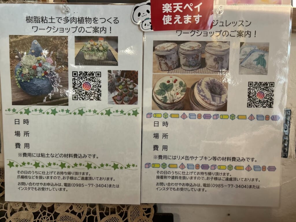 さらに、お店が定休日の火曜日と水曜日にはデコパージュや樹脂粘土で多肉植物を作るワークショップ等も開催されているそうです。