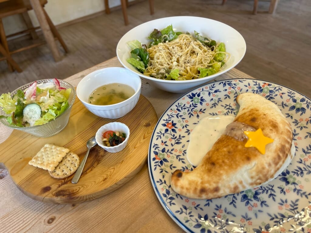 メニューは、パスタやグラタン、スパゲッティサラダなど種類も豊富です!その中でも「看板メニュー」として特に人気なのが、カルツォーネです。