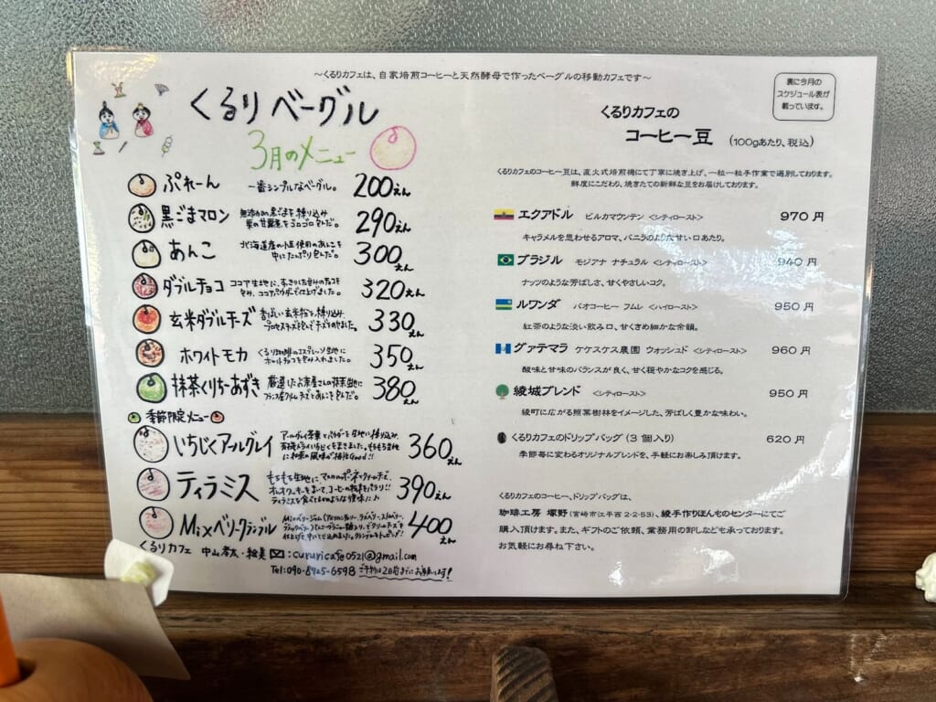 《くるりカフェ》のベーグルは、ひと口食べるたびに ” もっちり ” とした幸せを感じさせてくれる特別感があります。是非、一度足を運んでみてくださいね♩