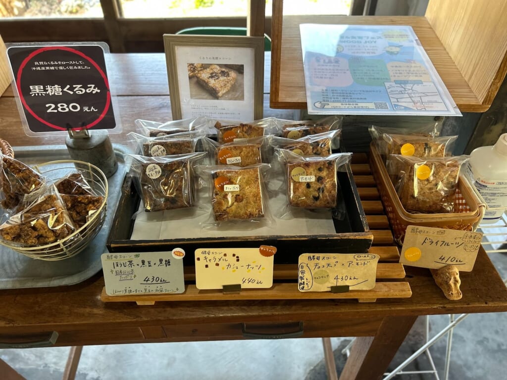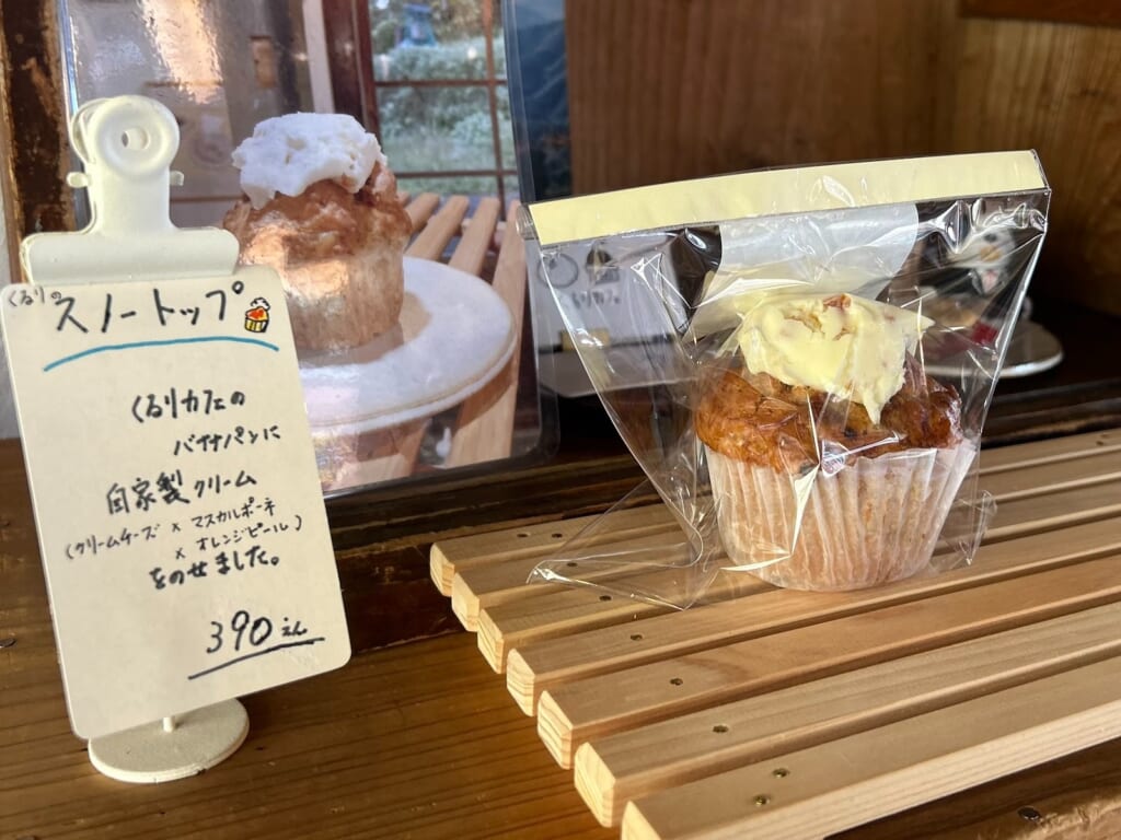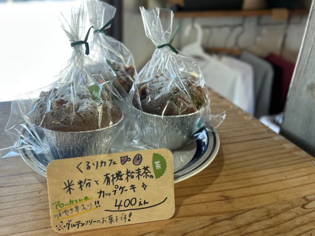 さらに、ベーグルの他にも、くるりカフェのバナナパンやグルテンフリーのカップケーキなど、体にやさしい焼き菓子も並んでいます。