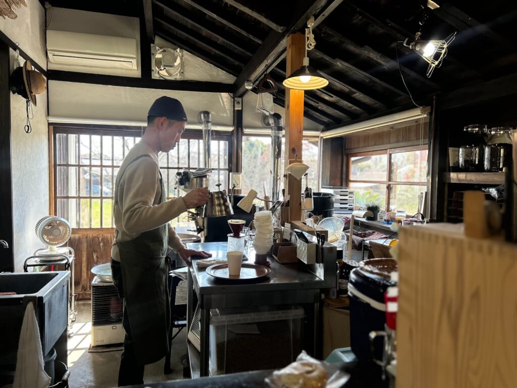 店内にはふわっとやさしいコーヒーの香りが広がり、目の前では丁寧にコーヒーを淹れる様子を眺めることができます。その一つひとつの所作に思わず見入ってしまうほどで、心地よい時間がゆっくりと流れています。