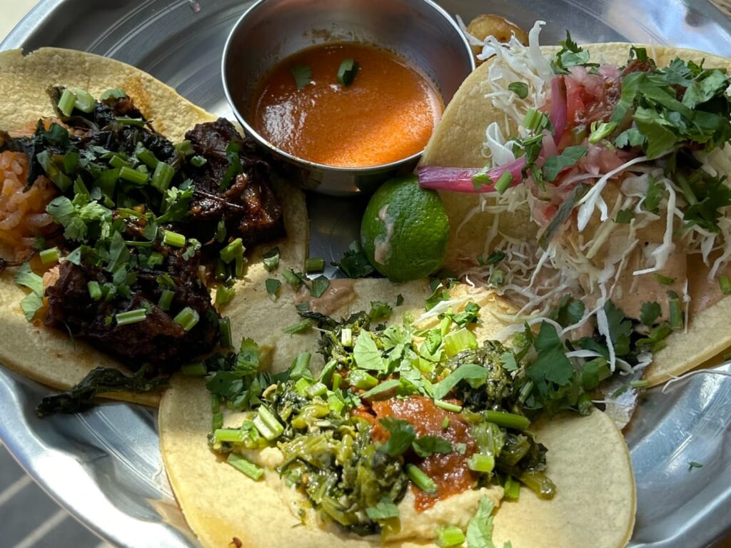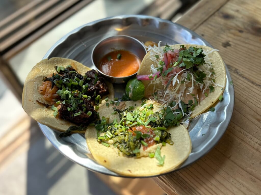 具材にもこだわりが詰まっていて、左から、牛ビリアとほうれん草、菜の花と豆、鯖のタコス。意外な組み合わせに驚きましたが、それぞれの素材の美味しさが感じられて、3種類を食べ比べできるのも魅力。どれから食べようか迷う楽しさがあります♩