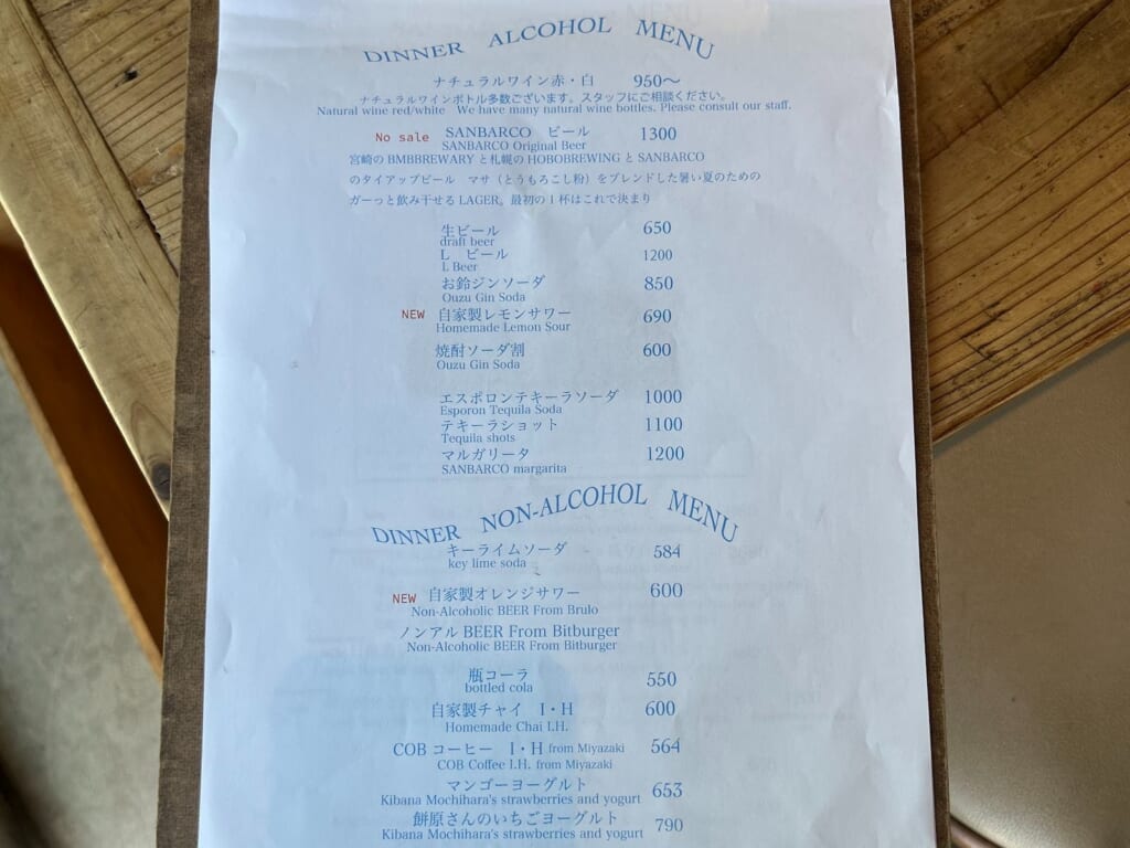 SANBARCOは、ランチだけでなくディナーも人気のお店です。夜になると、昼とはまた違った落ち着いた雰囲気に変わって、 ” ちょっと大人な空間 ” になります。ナチュールワインやお酒と、タコスや季節のお料理を楽しむ時間は、まるで旅行に来たかのような特別感が有ります。