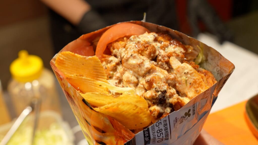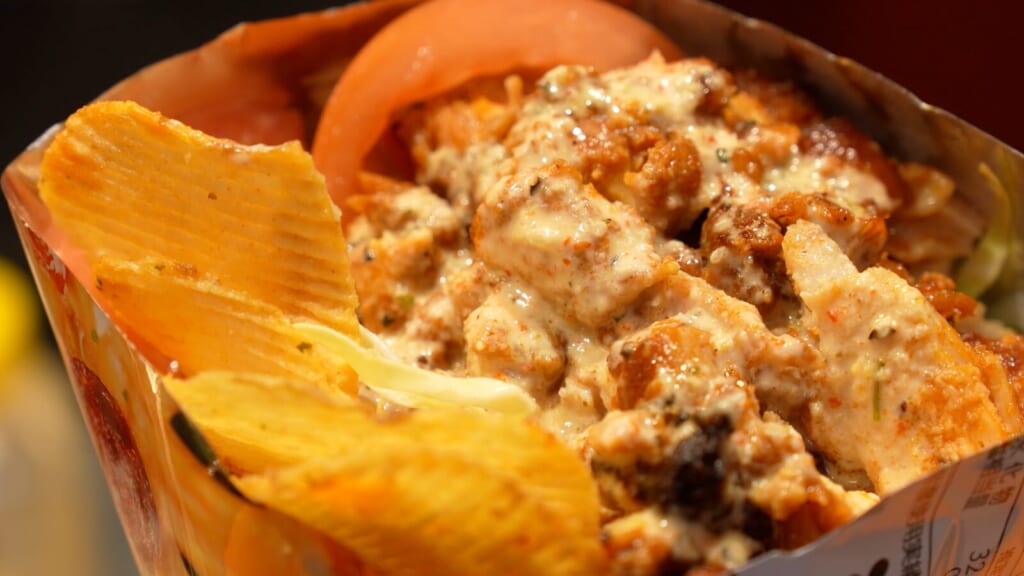 チップスを砕きながらケバブや野菜と混ぜていただくと、ザクザクとした食感の後に、スパイシーな鶏肉の旨みと肉汁が口いっぱいに広がります。ヨーグルトソースが全体をまろやかにまとめ、爽やかな後味を加えてくれるため、一度食べたらやみつきになる美味しさです!