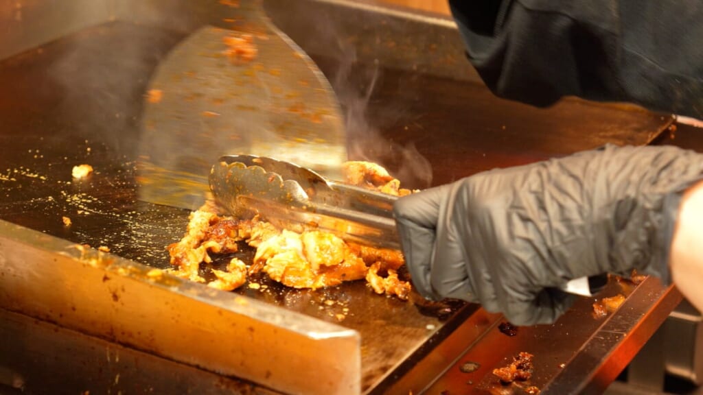 使われているのは、こだわりの県産鶏もも肉。16種類ものスパイスを独自に配合した特製ダレに3日間じっくり漬け込むことで、辛さだけではない、奥行きのある味わいを生み出しています♩