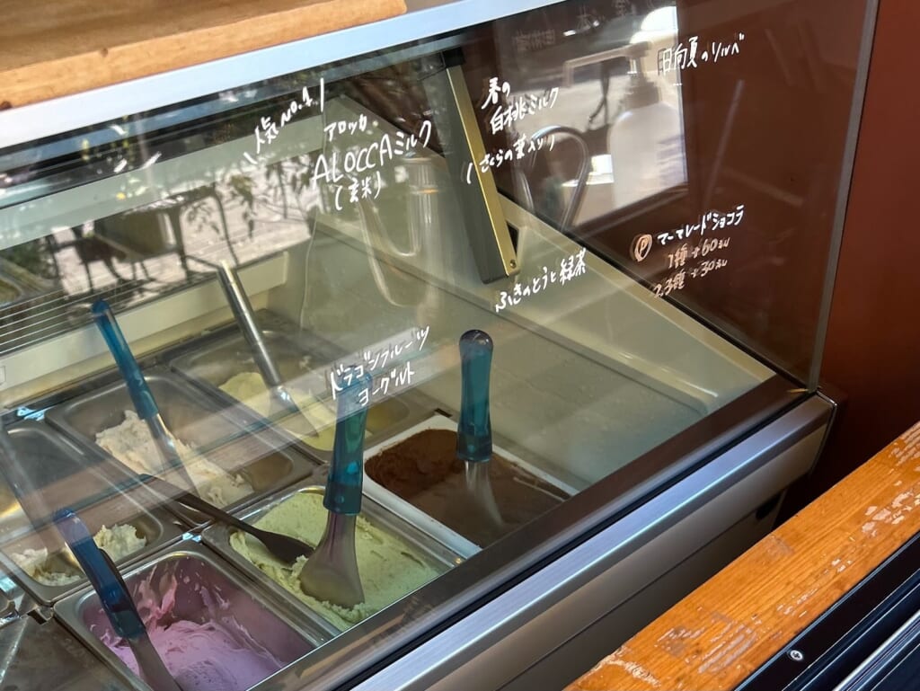こちらのジェラートは、綾の自然に育まれた農産物を中心に、地元の生産者さんから仕入れた素材を使用。ミルクや生クリームも九州産など、なるべく近い地域のものにこだわっているそうです。