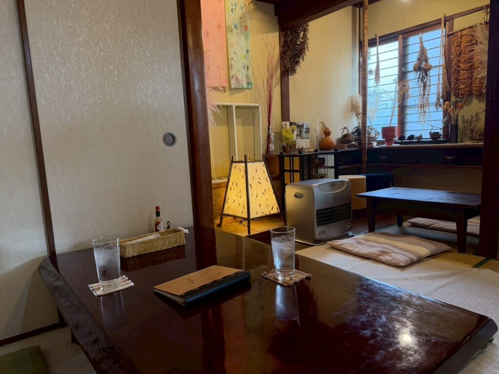 経営されているご夫婦が自分たちで改装にも携わったというアットホームなお店です。店内は靴を脱いで上がるスタイルで、建具などが古き良き雰囲気。駐車場はお店の前に3台停められます。