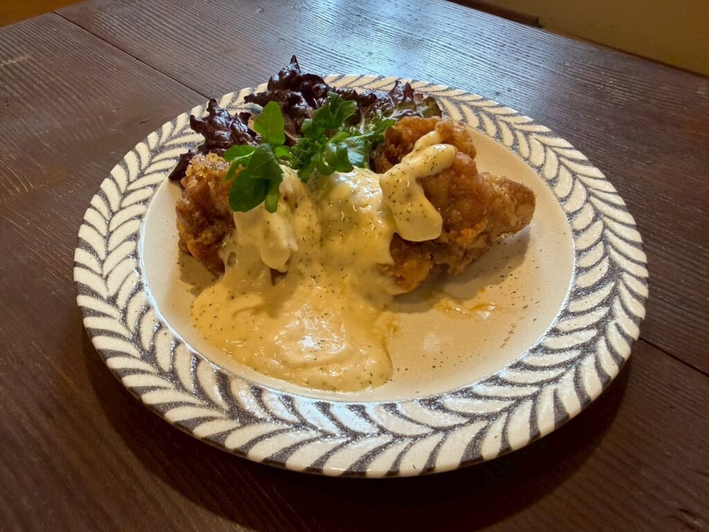 Tink Tinkのチキン南蛮は、衣に自家製米粉を使用。2日間かけてじっくり仕込んだ特製南蛮酢と、マヨネーズから手作りしたこだわりのタルタルソースを合わせた、グルテンフリーの特製メニューです。サクッとジューシーな仕上がりで、唐揚げとともにテイクアウトも可能です。