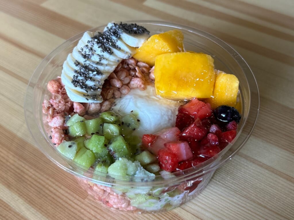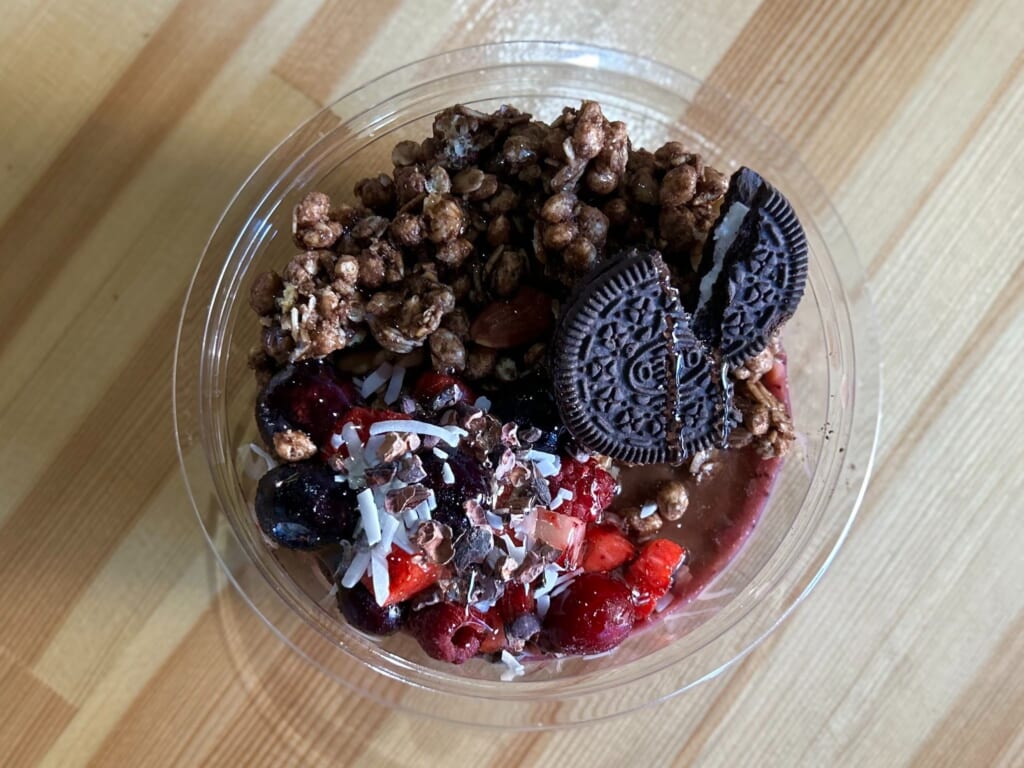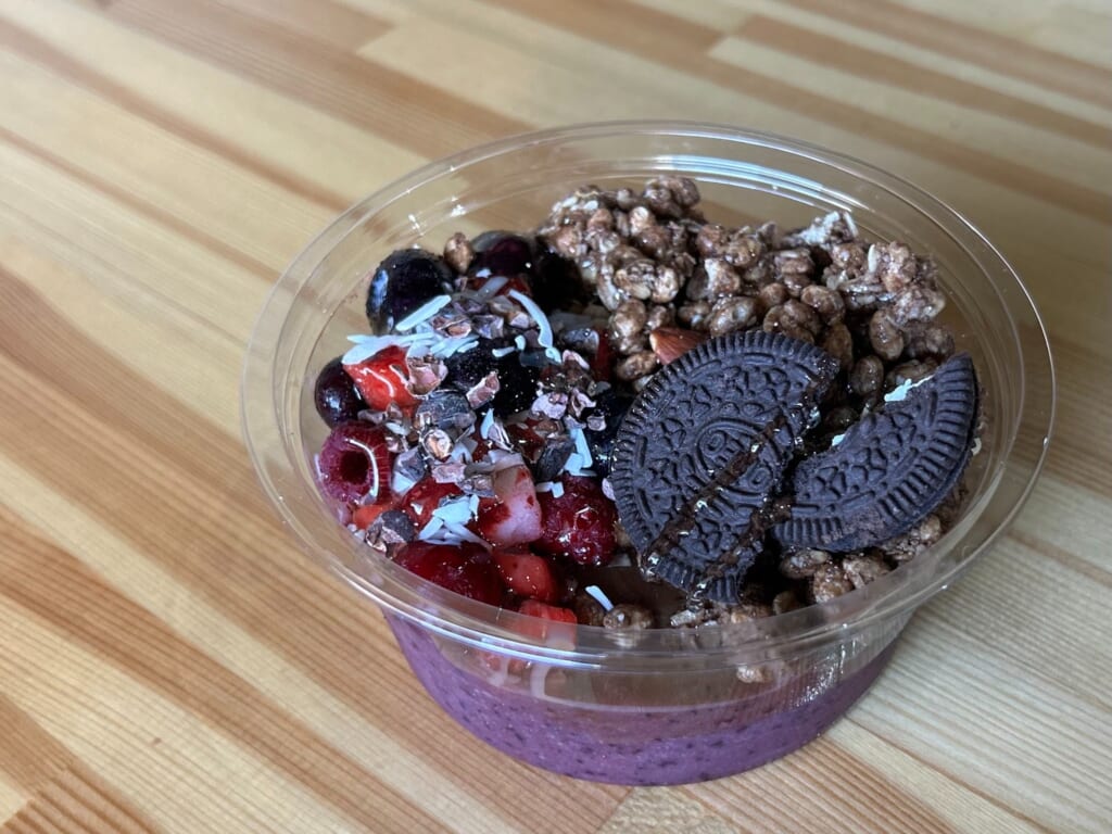 アサイーボウル好きには見逃せない!今回のお目当ては、あみーろーど店限定の ” チョコアサイーボウル ” です!ベリーやバナナ、グラノーラがたっぷりのった王道のアサイーボウルももちろん魅力ですが、ここでしか食べられない ” チョコトッピング ” バージョンがあるのが、このお店ならではの魅力です◎