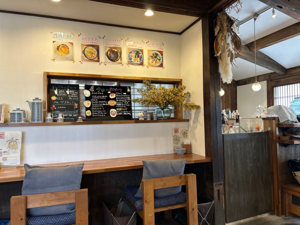 店内にはテーブル席、カウンター席があります。席と席の間にもほどよく距離があって、全体的に広々としているので、まわりを気にせずゆっくり過ごせる空間になっています。ひとりでのんびりカフェ時間を過ごしたい日にも、誰かとゆっくり楽しみたい日にもぴったり◎