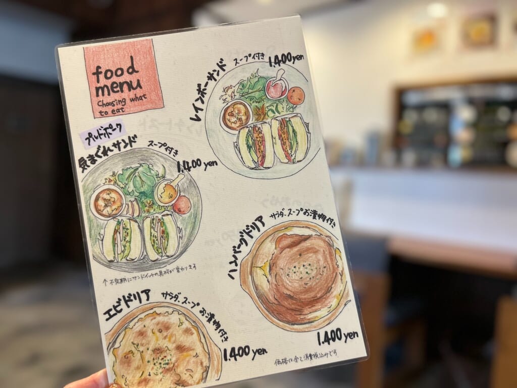 ランチはサンドイッチの他に、ドリア2種。定番の《レインボーサンド》もありますが、季節で内容が変わる《気まぐれサンド》を今回はいただきました。