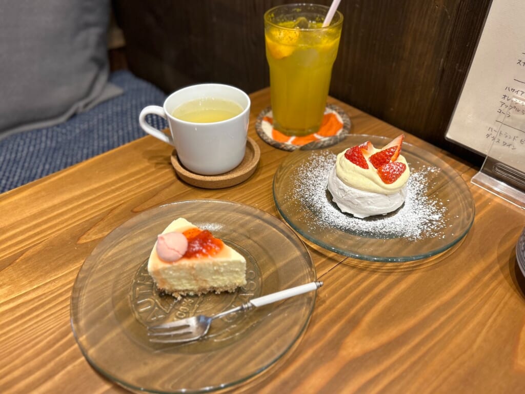 この日は、パブロバとダブルチーズケーキをいただきました♩食後のデザートにぴったりなサイズ感で、ランチ後にスイーツも楽しめるのが嬉しいですね。次はカフェタイムをメインに訪れたくなる、そんな心地良さがあるお店でした♩