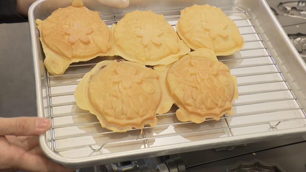 桜の焼き印があしらわれた可愛らしい丸い形が特徴で、「ご縁がつながるように」との願いが込められているそうですよ。
