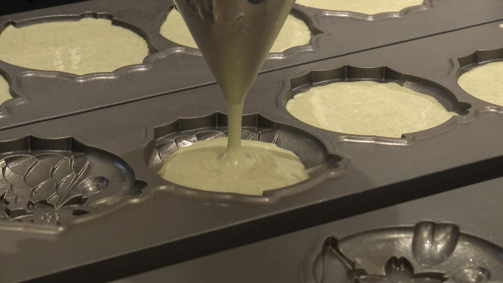 焼く工程では、弱火で20分から30分かけてじっくりと火を通し、その日の気温や湿度に応じて焼き方を微調整することで、最高のふっくらとした弾力を生み出しています。