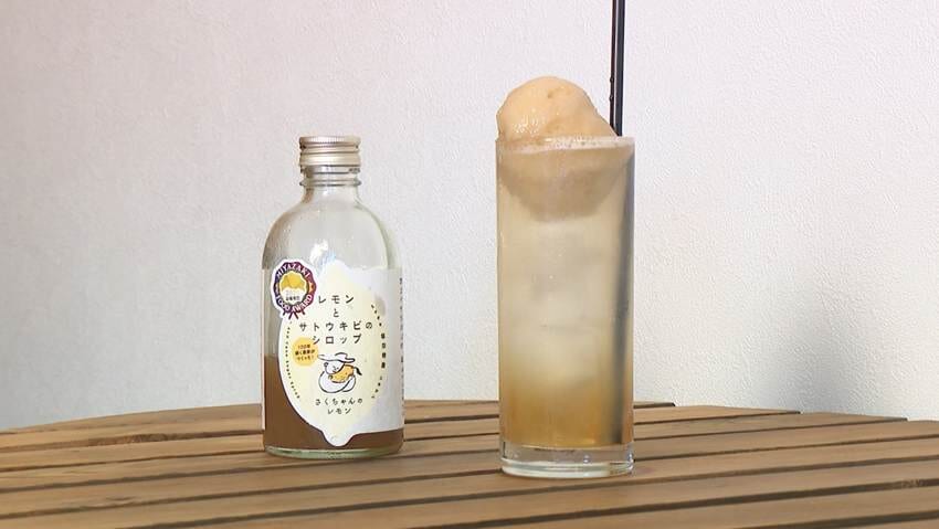サトウキビとレモン果汁だけで作ったシロップを入れたソーダに、日南のさくちゃん農園のレモンを使ったシャーベットをのせた一杯で、爽やかな酸味が口いっぱいに弾けます。
