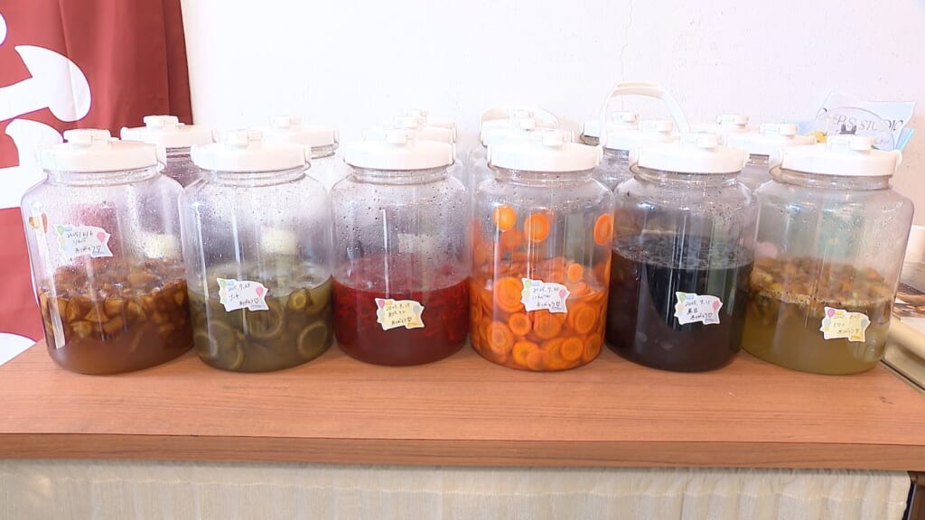 そんな鮎川さんの料理の要は、店内にずらりと並んだ自家製の発酵ドリンク!旬の果物や野菜を3ヶ月間かけて発酵させて作るそうで、腸活にも繋がります。この発酵ドリンクはみりんの代わりにすべての惣菜に使用されているそうですよ。