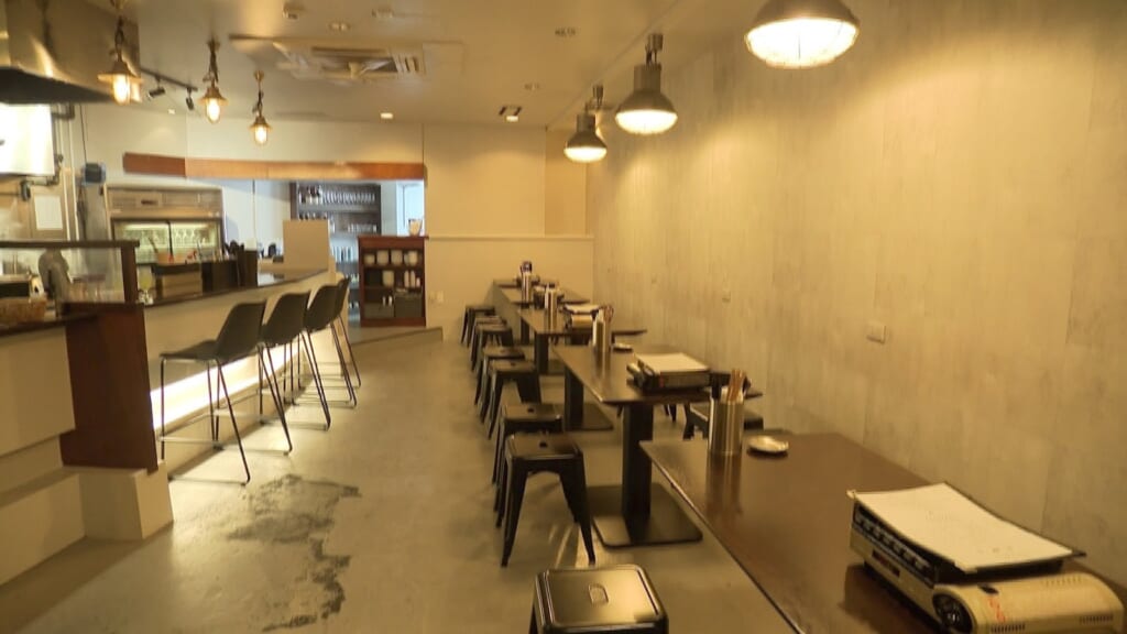看板もなく、ここが飲食店なのかと迷ってしまうような場所にあるのが、今年5月にオープンした「太一家(タイチネ)」。扉を開けるとスタイリッシュでおしゃれな空間が広がっています。