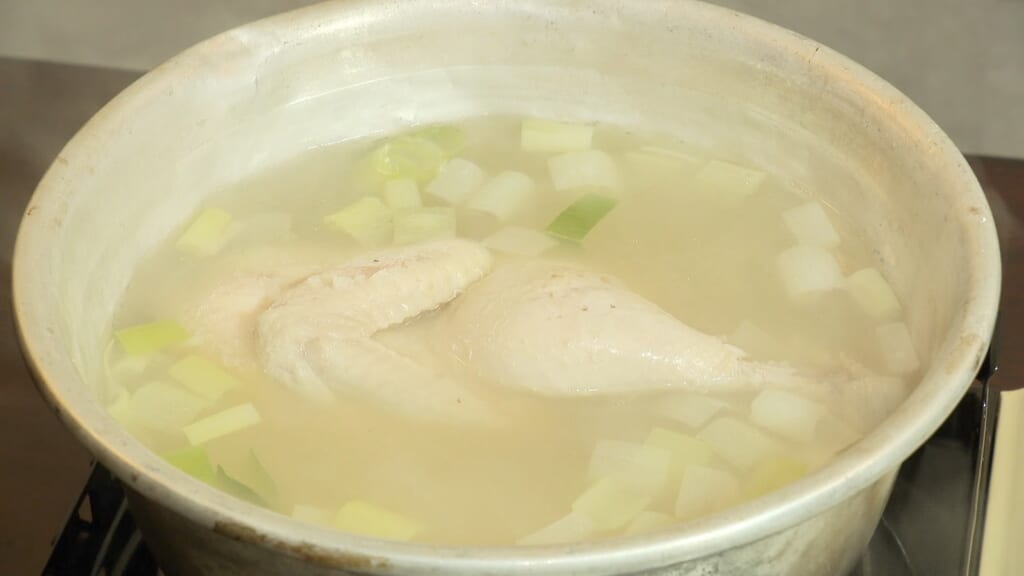 食べるときは、醤油、お酢、からし、タテギなどをお好みで混ぜ合わせ、自分だけの特製タレにつけていただきます。鶏の旨みが凝縮した優しい味わいのスープと、ホロホロと柔らかい鶏肉が絶品です!