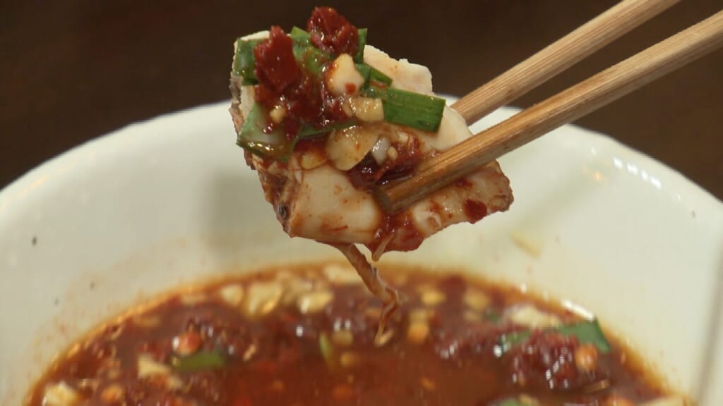 さらに、韓国春雨の“タンミョン”や、セリ、玉ネギといった野菜も加わり、食べ応え抜群!味の決め手は、自家製の万能調味料「タテギ」と韓国唐辛子を使った特製のスープ。