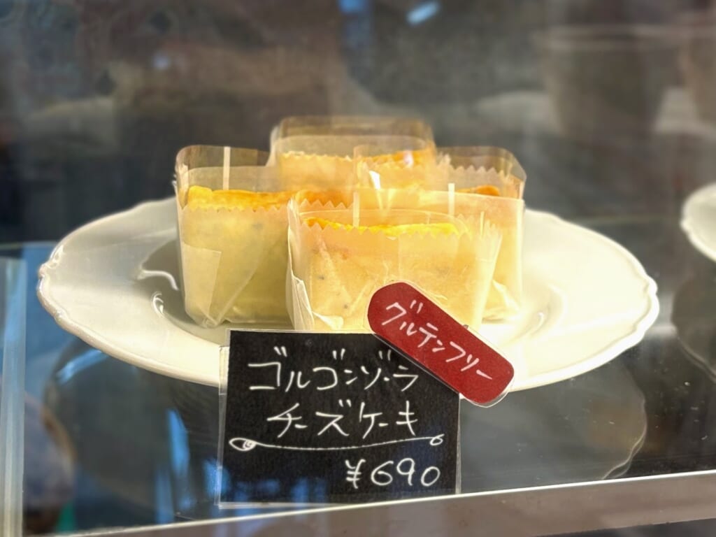 グルテンフリーでおつまみにもぴったりな『ゴルゴンゾーラチーズケーキ』、和栗の時期にしかお目にかかれない甘さ控えめ”栗感満載”の『和栗の米粉シフォンケーキ』。