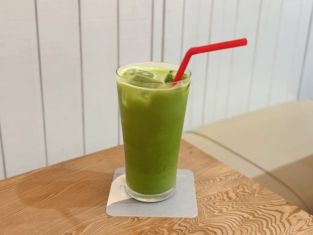今回私は『抹茶ラテ』をいただきました!こちらのラテは、新富町にある「松浦牧場」の低温殺菌ノンホモ牛乳を使っており、コク深く、さっぱりしているのが特徴です。無糖から甘さを選ぶこともできますよ。とても嬉しいサービスですよね♪