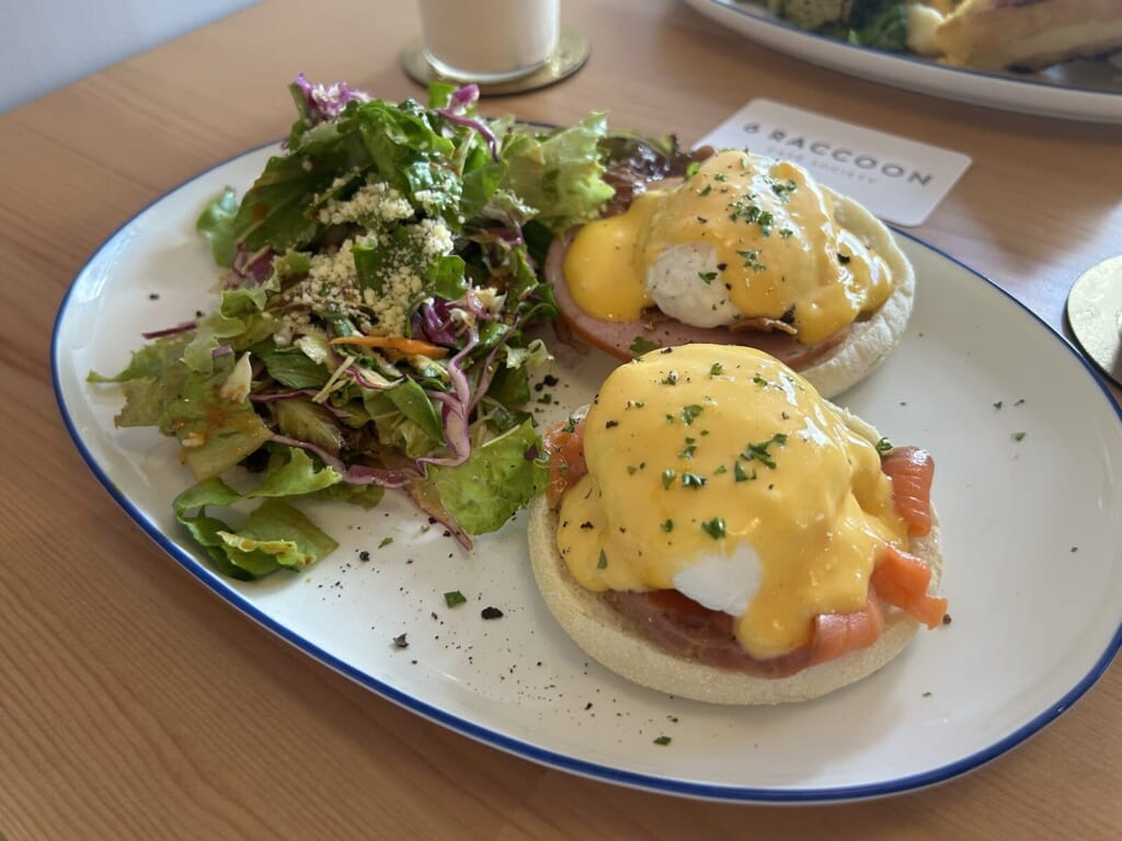 女性に人気のスモークサーモンとハムとベーコンの2種類を贅沢に楽しめます。しっかり食べ応えがありながらも、 モーニングでも重すぎず、バランスの良いプレートです◎
