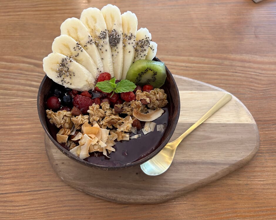 女性に人気のメニュー「アサイーボウル」。迷ったらまずはこれをお勧めしたい …なめらかなアサイーに、バナナやベリーなどのフルーツが重なって自然な甘さと爽やかさが口いっぱいに広がります。美味しくてキレイにもなれる 一品です♩