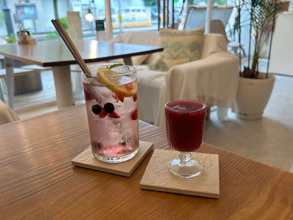 どちらもCoco Bowlsならではのこだわりの詰まったヘルシードリンク。見た目の可愛さはもちろん、栄養もしっかりチャージできるので、食事と一緒に飲んで欲しい一杯です♩
