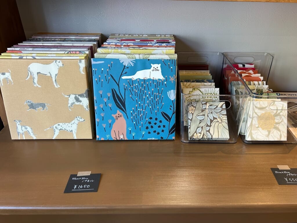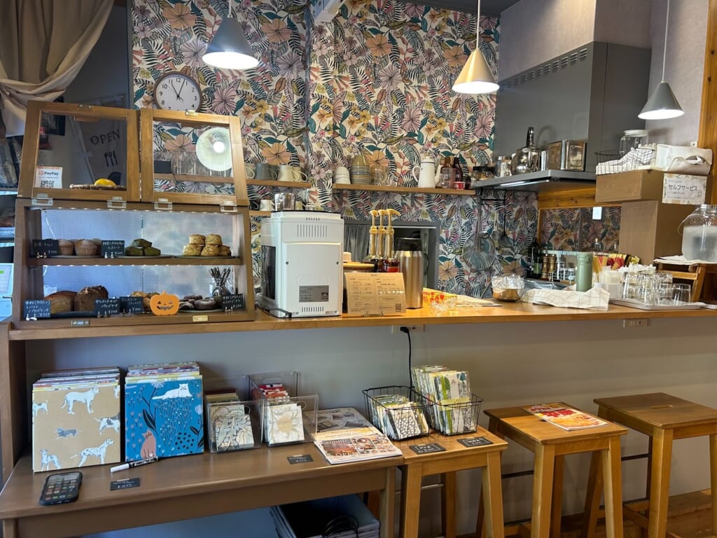 レジ横にはお店オリジナルの ” 壁紙を使った可愛いパネルや雑貨 “が並んでおり、思わず手に取りたくなるデザインです。カフェとしてだけでなく、インテリア好きにもたまらない空間になっています◎ぜひ一度足を運んでみてくださいね♩