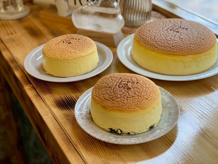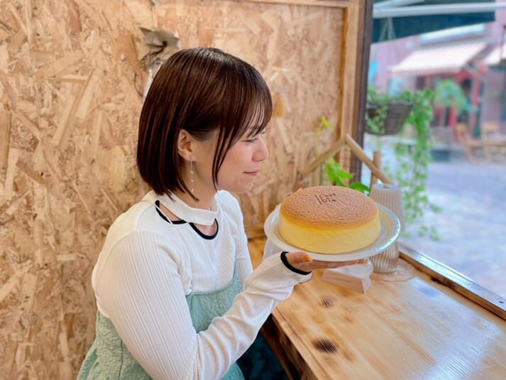 毎朝店内で一つずつ丁寧に作られた、焼きたてスフレチーズケーキ。できたては「飲めるチーズケーキ」!?とも言われているそう。