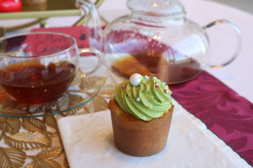 抹茶風味のクリームにカラフルなスプリンクルが乗っています。小さいクリスマスツリーのようでほっこりしますね♪