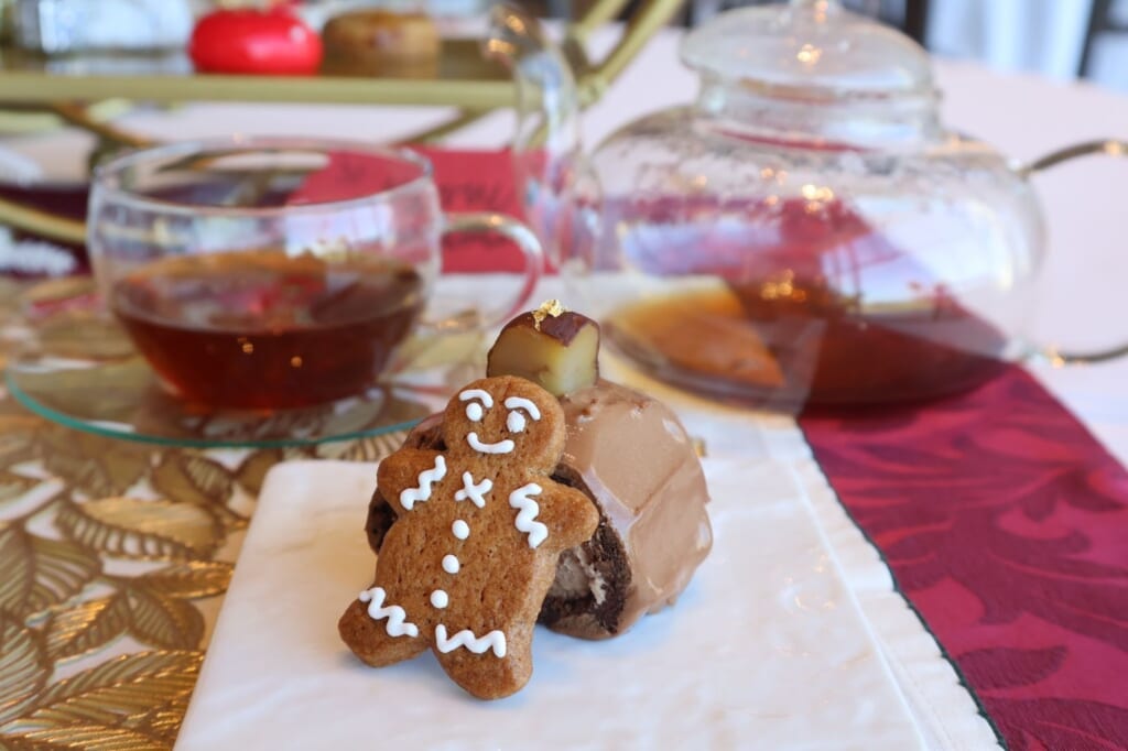 ジンジャーブレッドマンをイメージしたクッキーはしっとり柔らかい!ブッシュドノエルは甘くて濃厚です。ティーが進みます♪