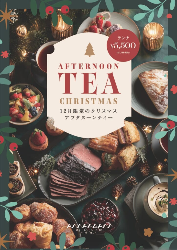 クリスマスアフタヌーンティーは12月5日(金)から始まります。事前予約制のため、アマンダンブルーの予約サイト(※最下部の店舗情報)をご覧ください。
