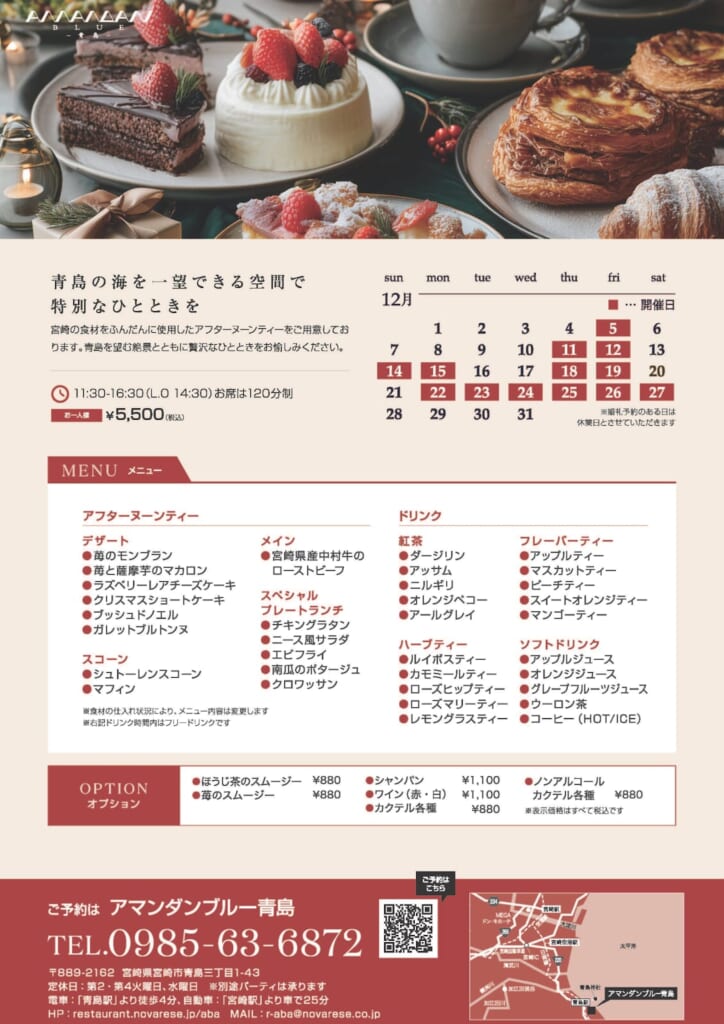 【12月5日(金)から】クリスマス限定アフタヌーンティーが登場!『アマンダンブル―青島』(宮崎市)