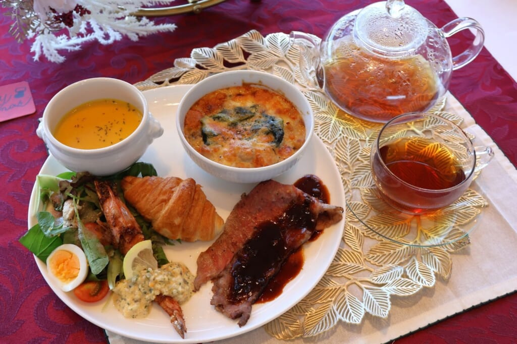 まず運ばれてきたのは、スペシャルプレートランチとメイン。スペシャルプレートランチはチキングラタン、ニース風サラダ、エビフライ、南瓜のポタージュ、クロワッサン。