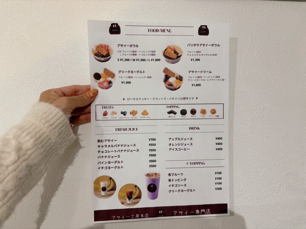 女性を中心に大人気のアサイー。お店の方に聞くと年齢性別問わず、様々なお客様がご来店されるとのこと。